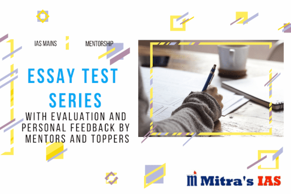 This is a comprehensive essay test series for mains, wherein the evaluation, feedback and tips for improvement are provided by top mentors only including Mitra Sir , Ravi Kapoor (IRS), Nimish Kapur (CAPF, AIR-6) and Past Toppers.